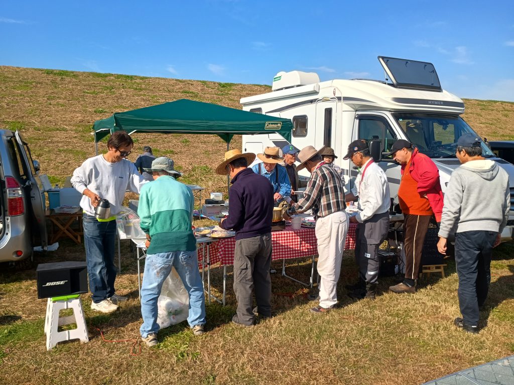 飛行場開きを行いました。寒空の中、たくさんのメンバーが集まりました。暖かいお雑煮の振る舞いがあり、美味しく楽しい時間を過ごしました。